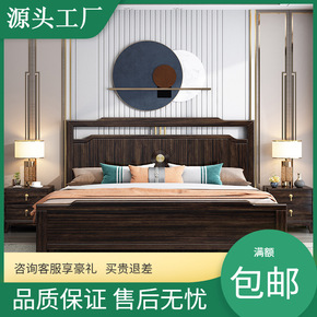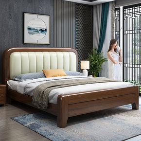 新中式轻奢胡桃木实木床1.8米1.5m现代简约软包...