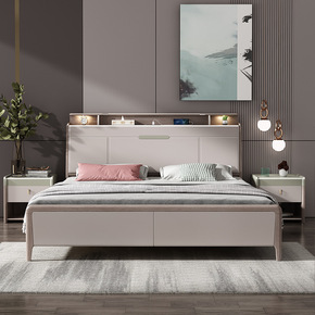 一件代发实木床北欧现代简约1.8米经济型双人床1....
