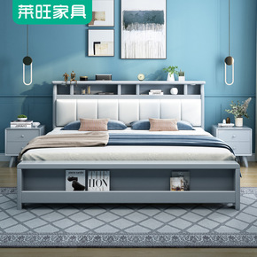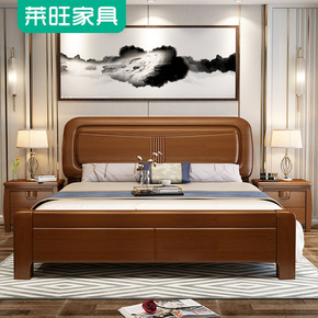 新中式实木床1.8米储物大床 现代简约原木床头床架...