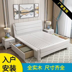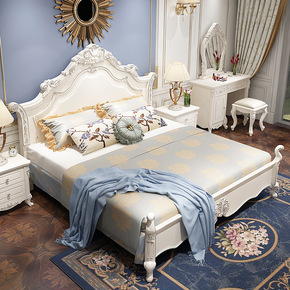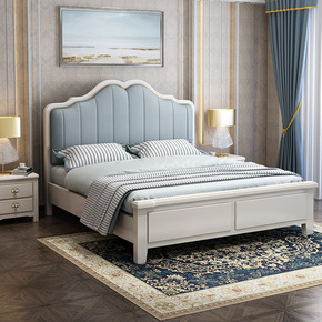 美式实木双人床1.8米卧室轻奢大婚床1.5M主卧白...