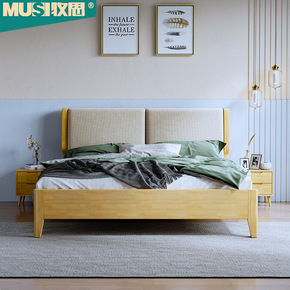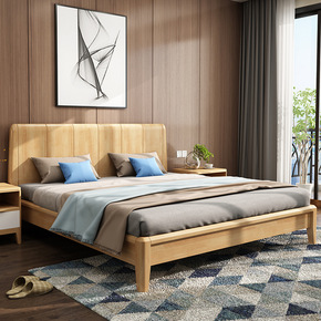 实木北欧床简约现代家用1.5米单人床2.0米双人床...