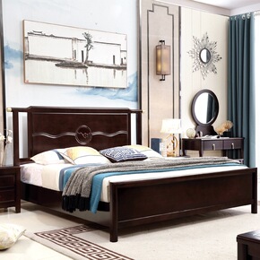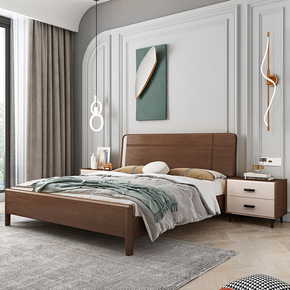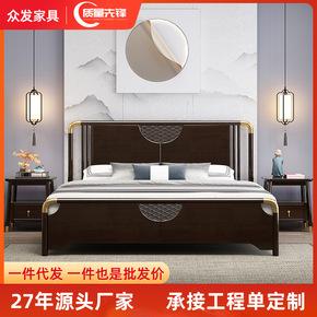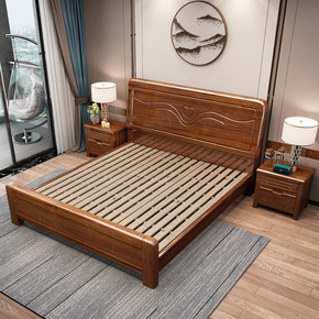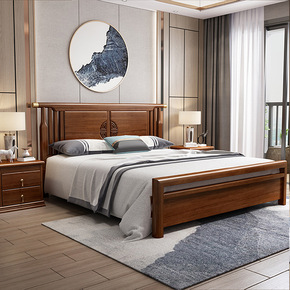实木床胡桃木1.8米双人床新中式1.5m单人床主卧...