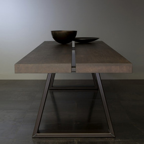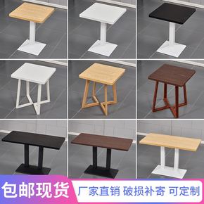 北欧风休闲铁艺实木餐桌家用咖啡店厅食堂饭店长方形餐...