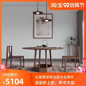 新中式.5米圆形实木餐桌椅组合 中式饭桌禅意中国风...