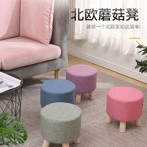 布艺小凳子家用实木小矮凳子沙发凳换鞋凳网红小圆凳子...