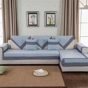 四季棉麻沙发垫简约纯色布艺防滑沙发巾棉线编织实木沙...