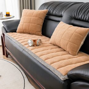 羊羔绒毛绒办公沙发垫冬款加厚防滑皮沙发专用套罩巾实...