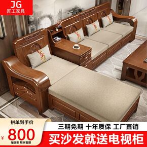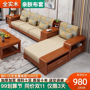 中式全实木沙发组合现代简约小户型经济型仿古沙发客厅...