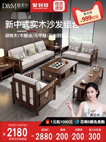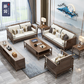 实木沙发组合新中式冬夏两用小户型胡桃木客厅家具现代...