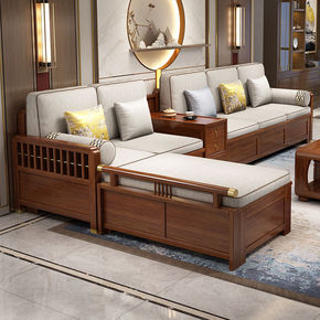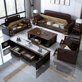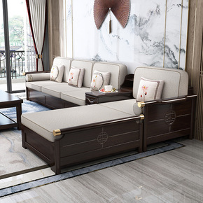 新中式沙发客厅冬夏两用带储物胡桃木全实木家具套装组...