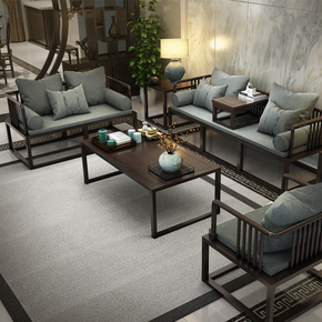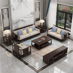 新中式乌金木实木沙发禅意客厅现代简约布艺组合民宿别...