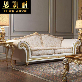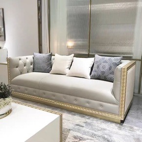 美式轻奢实木沙发组合榉木布艺三人位客厅小户型香槟金...