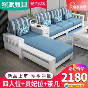 实木沙发组合现代简约白色布艺沙发贵妃转角客厅家具小...