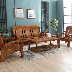 中式实木沙发组合农村经济小户型现代简约木质客厅整装...