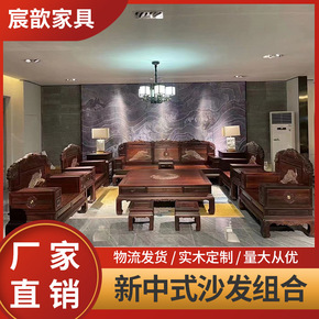 新中式实木沙发组合客厅样板房别墅民宿会所禅意大小户...