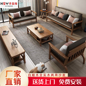 新中式全实木沙发组合小户型白蜡木客厅家具可拆洗布艺...
