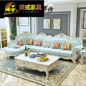 欧式真皮转角沙发组合牛皮轻奢小户型中欧式客厅创意实...