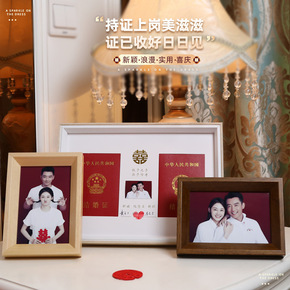 实木结婚证相框情侣夫妻登记照裱礼物摆台挂墙领证纪念...