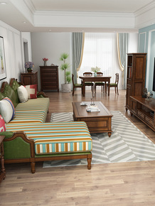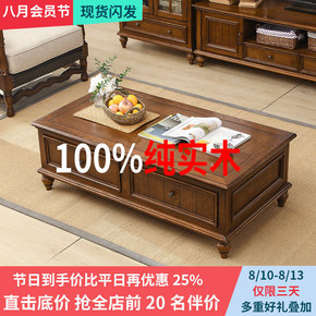 美式实木电视柜茶几组合做旧小户型客厅家用胡桃色复古...