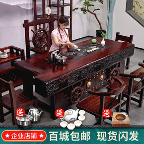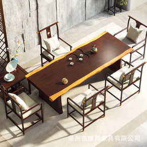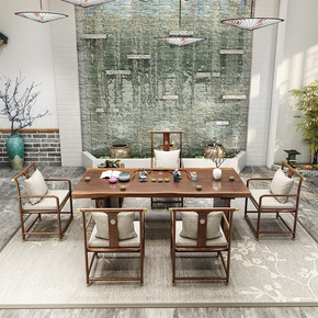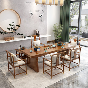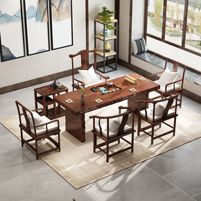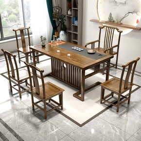 新中式茶桌椅组合家用实木茶台原木办公室禅意功夫大板...