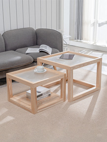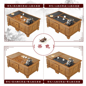火烧石茶几实木简约现代客厅套装办公室大理石功夫泡茶...