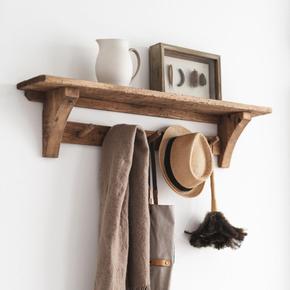 润家家居松木多功能挂衣架壁挂层架实木衣架简约家用衣...