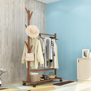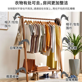 挂衣架落地置物架卧室简易衣柜收纳架实木衣帽架多功能...