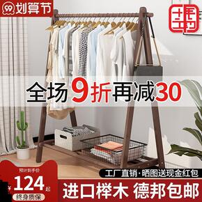.实木衣帽架家用落地立式挂衣架卧室多功能衣架简易挂...