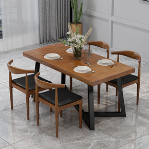 北欧工业风实木长桌长方形铁艺餐桌椅组合咖啡厅餐厅创...