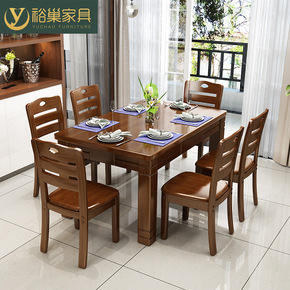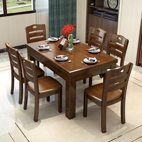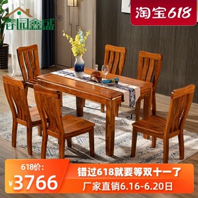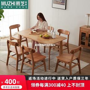 实木餐桌中小户型简约现代椅组合家用吃饭桌子长方形西...