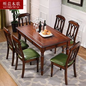 美式实木餐桌长方形家用小户型吃饭桌子乡村复古风原木...