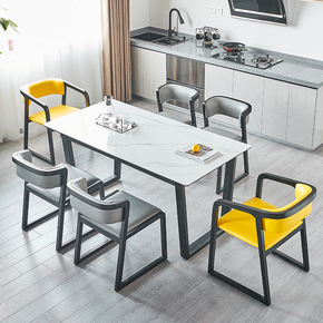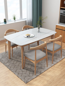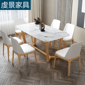岩板餐桌家用小户型实木北欧餐桌椅组合简约饭桌长方形...