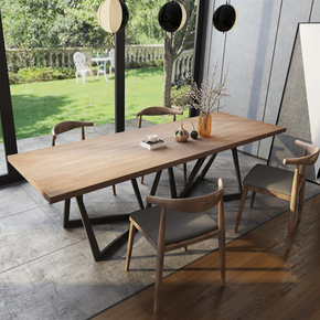 北欧餐桌椅组合实木桌简约长方形复古长条原木家用咖啡...