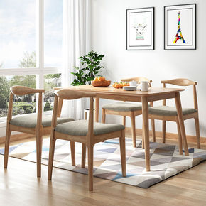 餐桌椅组合家用现代简约实木小户型吃饭桌子一桌四椅长...
