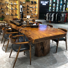 简约原木会议桌餐桌长方形服装店实木桌子新中式办公桌...