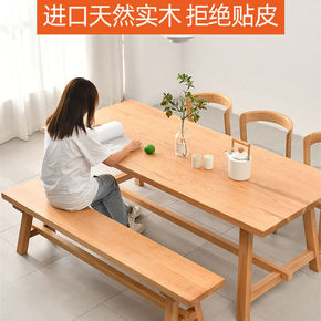北欧实木餐桌餐厅长方形原木多人吃饭桌子民宿大型聚会...