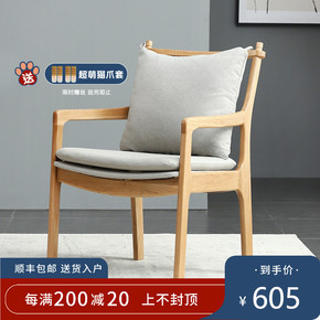 北欧实木橡木现代简约餐厅餐椅软包布艺靠背椅扶手书桌...