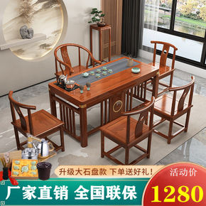 .厂家直销新中式老榆木免漆烫蜡打孔圈椅茶桌椅餐桌椅...