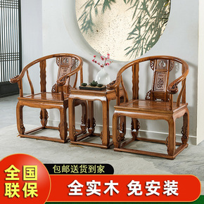 皇宫椅三件套实木太师椅老榆木仿古官帽椅单人靠背茶椅...