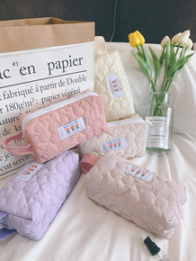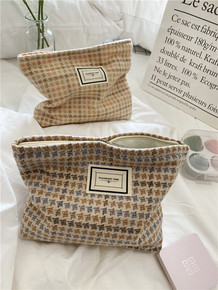 小白兔几 韩风ins大容量毛呢化妆包便携零钱手拿包...