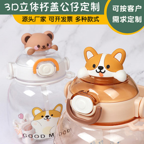 pvc卡通杯盖公仔网红大肚杯小熊兔子狗玩偶装饰勺子...