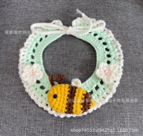 新款猫咪狗狗宠物项圈围脖手工毛线钩针口水巾厂家直销...