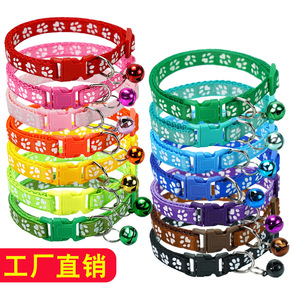 宠物贴布狗狗猫咪单爪印铃铛项圈猫扣项圈反光款代发工...