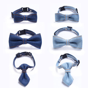 宠物牛仔领结项圈猫咪狗狗可调节领带项圈纯色牛仔宠物...