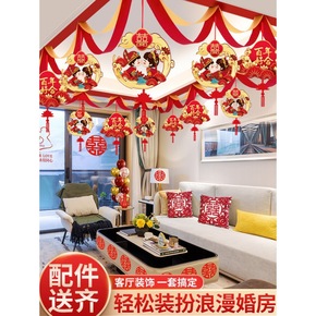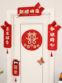 婚房布置门口装饰喜字门帘拉花结婚新房客厅女方卧室男...