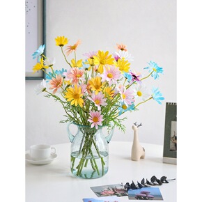 水滴雏菊仿真花艺客厅假花插花装饰花欧式餐桌玻璃花瓶...