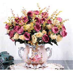仿真花玫瑰花蕾绢花塑料花假花婚庆酒店家居客厅餐桌茶...