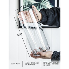 特大号花瓶简约玻璃透明落地摆件客厅餐桌水竹富贵竹干...
