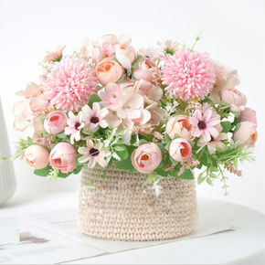 仿真牡丹花绣球花套装家居客厅装饰塑料假花绢花小盆栽...