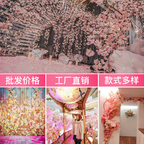 仿真花枝婚庆装饰吊顶绢花室内客厅落地梨花桃花树塑料...